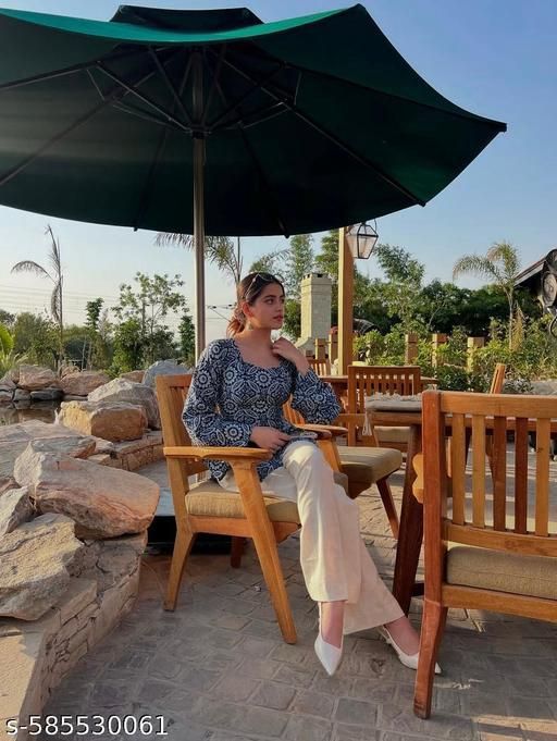 Elevate your everyday fashion with this chic and comfortable outfit . Featuring a stylish blue printed top with flared bell sleeves and a flattering square neckline, paired with elegant white straight-fit pants, this ensemble is perfect for both casual outings and semi-formal occasions. The lightweight and breathable fabric ensures comfort throughout the day while keeping you fashion-forward.